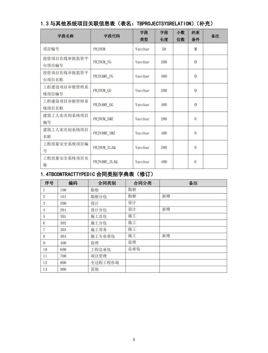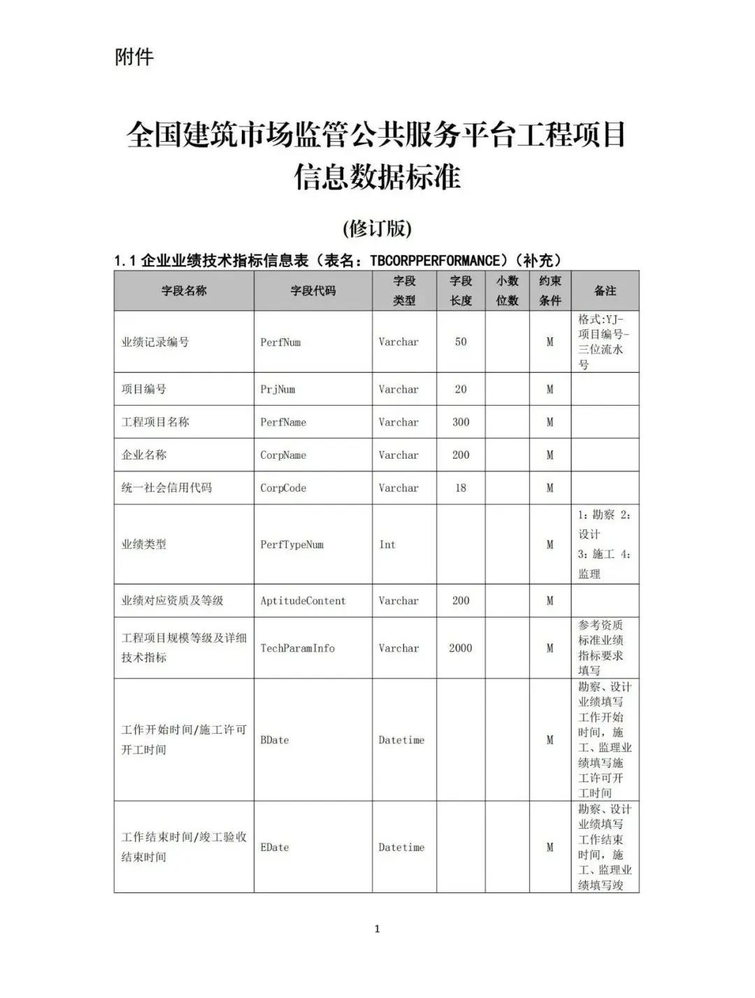 按照建設(shè)工程企業(yè)資質(zhì)標(biāo)準(zhǔn)要求,我部對全國建筑市場監(jiān)管公共服務(wù)平臺(tái)(以下簡稱全國平臺(tái))工程項(xiàng)目信息數(shù)據(jù)標(biāo)準(zhǔn)進(jìn)行了修訂,修訂后的工程項(xiàng)目信息數(shù)據(jù)標(biāo)準(zhǔn)見附件。請省級(jí)住房城鄉(xiāng)建設(shè)主管部門抓緊修訂完善省級(jí)建筑市場監(jiān)管一體化工作平臺(tái)相關(guān)數(shù)據(jù)標(biāo)準(zhǔn),做好平臺(tái)改造升級(jí)工作,于2024年3月31日前完成與全國平臺(tái)對接。