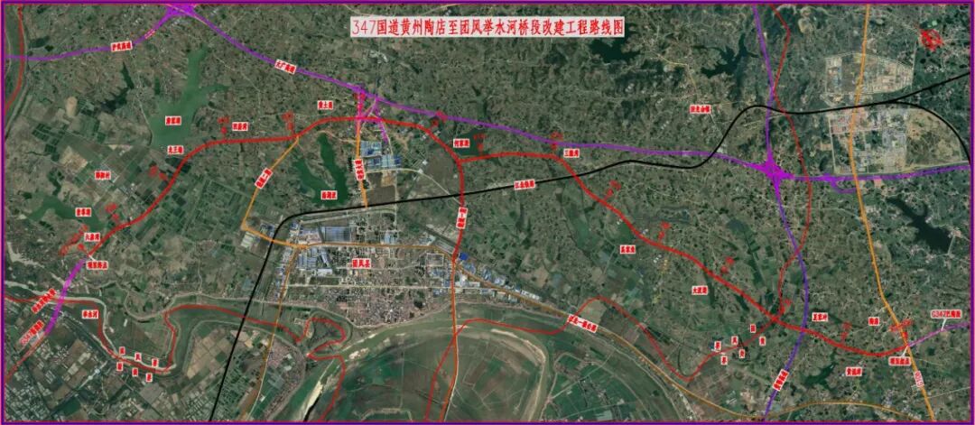347國(guó)道黃州陶店至團(tuán)風(fēng)舉水河橋段團(tuán)風(fēng)境改建工程起點(diǎn)位于黃州區(qū)陶店鄉(xiāng)邱家店西北與106 國(guó)道交叉口處,與347國(guó)道黃岡市巴河至陶店段對(duì)接,向北展線經(jīng)袁家鋪村上跨黃鄂高速公路后在團(tuán)風(fēng)縣大灣鋪村附近進(jìn)入團(tuán)風(fēng)縣,向北上跨武漢新港江北鐵路,后向西經(jīng)土庫(kù)垮、曾家垮、沙塘灣,至蔡家咀接241省道繞城段并共線至白鶴林,與迎賓大道交叉,沿團(tuán)風(fēng)城市規(guī)劃區(qū)外圍展線,經(jīng)黃土崗村、程家樓,至蓼葉咀村晏家灣與347國(guó)道舉水河大橋段起點(diǎn)對(duì)接。路線全長(zhǎng)23.153公里。全線采用設(shè)計(jì)車速80公里/小時(shí),路基寬度25.5米的雙向四車道一級(jí)公路標(biāo)準(zhǔn)建設(shè)。項(xiàng)目總投資為9.079億元,計(jì)劃工期為36個(gè)月。