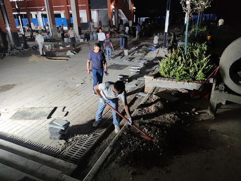 立秋之后,夏日余熱未消,位于觀音鎮(zhèn)的觀音鎮(zhèn)初級中學整體遷建工程建設項目數百名一線工人正熱火朝天地趕工期。為保證學校師生正常開學,鄖西片區(qū)全體職工與現場工人們一起加班加點的完成現場收尾工作。當萬家燈火漸次暗淡,施工現場卻依舊燈火通明,探照燈照亮一個個忙碌的身影。